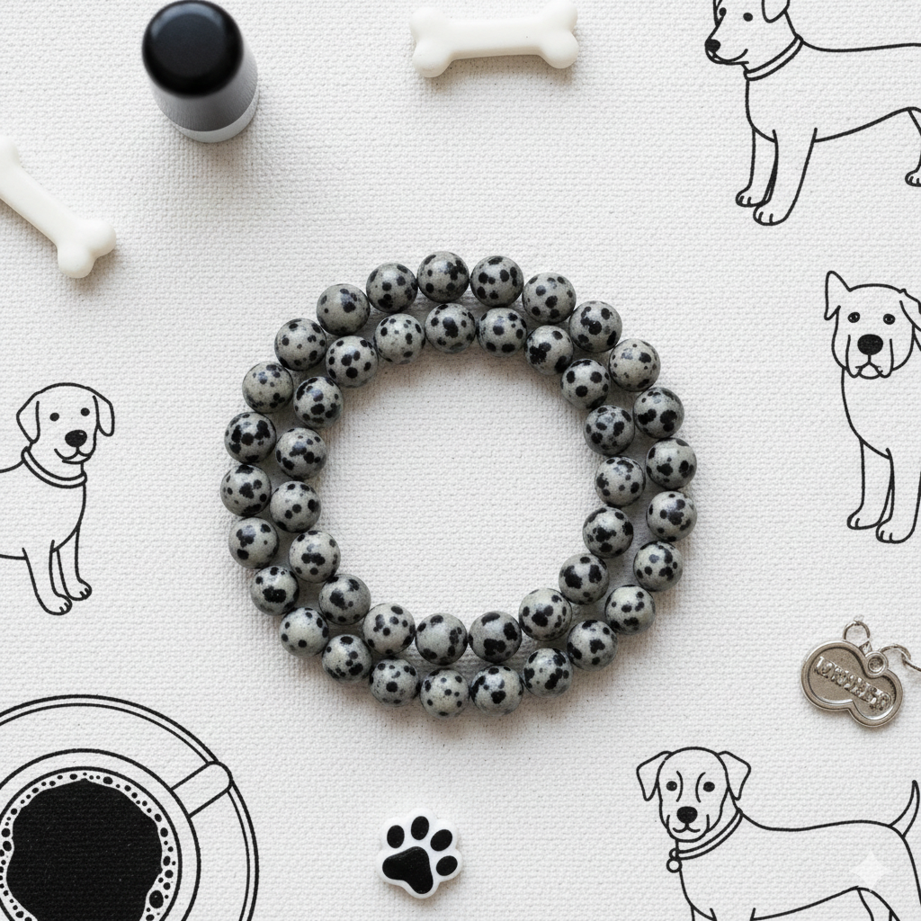 The Dalmatian Jasper 8mm Bracelet is a joyful grounding crystal bracelet known for promoting positivity, emotional balance, and inner child healing. This natural jasper stone helps break negative thought patterns while encouraging playfulness and emotional clarity.