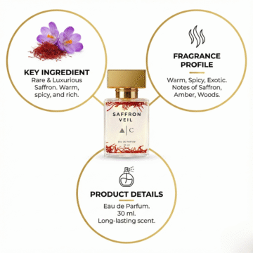 Ideal for functions, cocktail nights, festive wear and romantic dates, Saffron Veil is for the woman who loves sweet, ambery florals with a luxurious Middle-Eastern touch.
