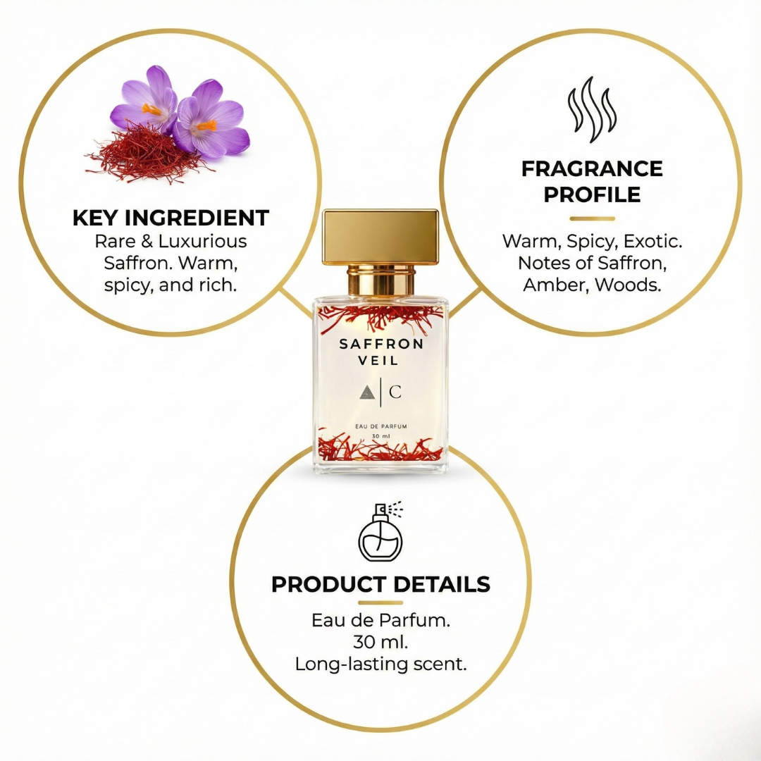 Saffron Veil – Eau de Parfum for Women| Sweet Floral Amber | Luxe Evening Perfume